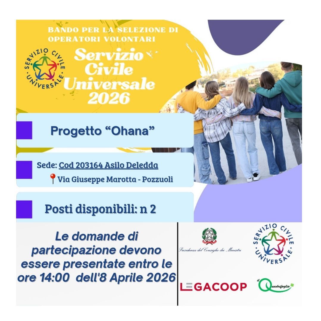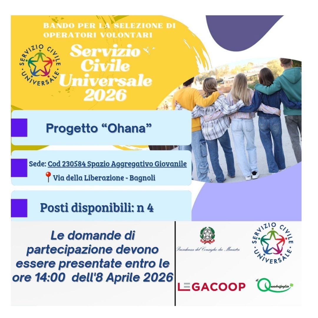 Per scegliere di svolgere il servizio civile con noi presentando domanda per il progetto “Ohana - connessioni virtuose” (codice progetto PTCSU0004224011774NMTX ) e scegliendo tra una sola delle seguenti sedi: